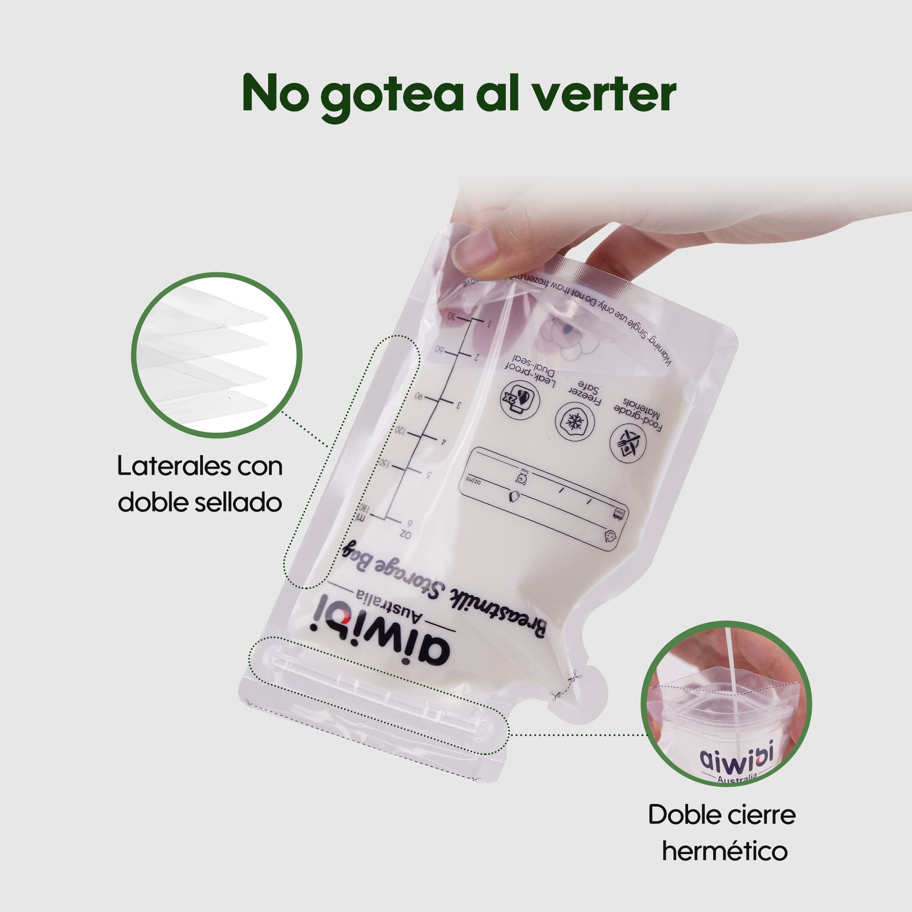 Extrae la leche directamente en la bolsa y rasga el pico para un vertido fluido y sin derrames.