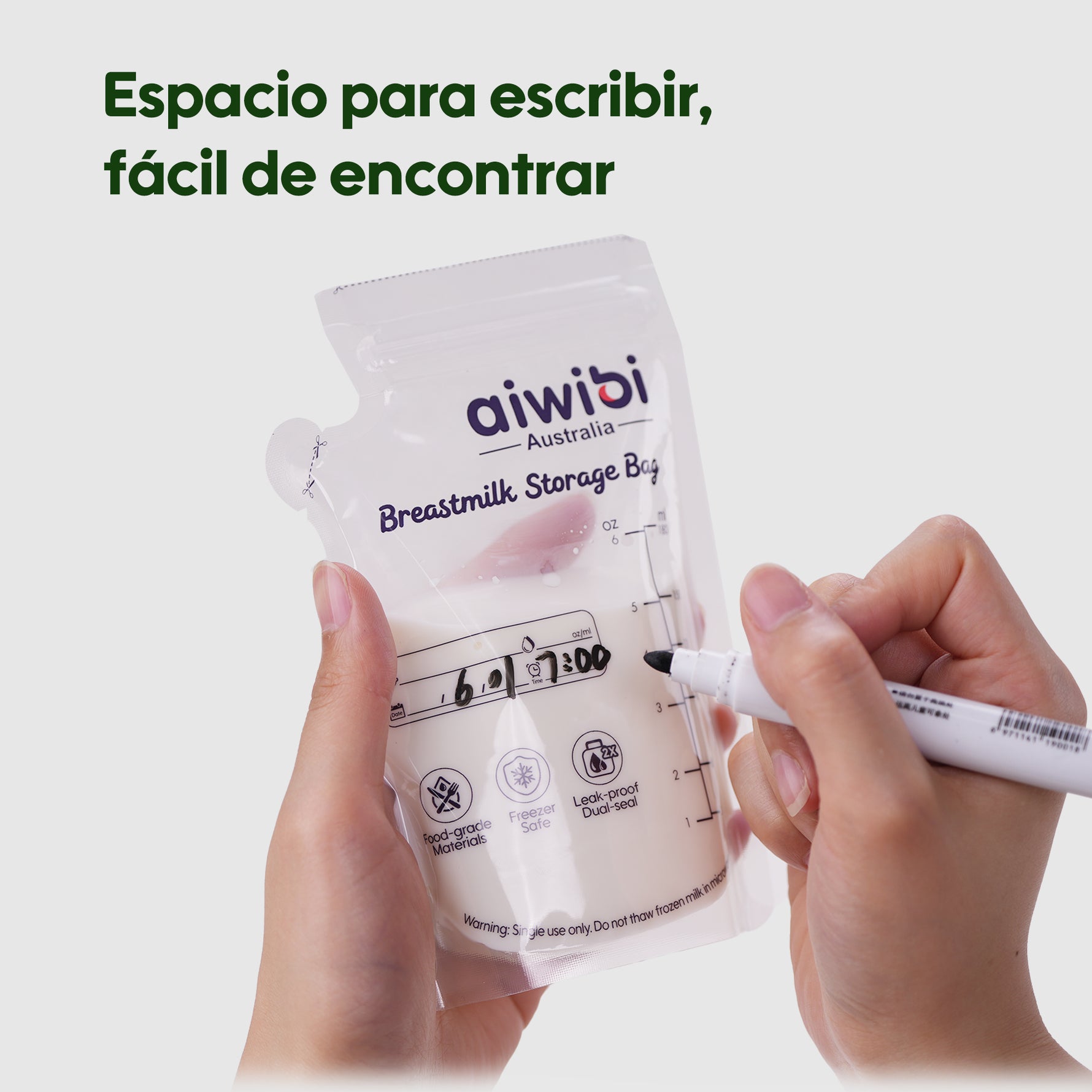 Las bolsas tienen una capacidad de hasta 6 onzas (180 ml). En la bolsa están impresas marcas de medición claras tanto en onzas (oz) como en mililitros (ml) para facilitar su lectura.
