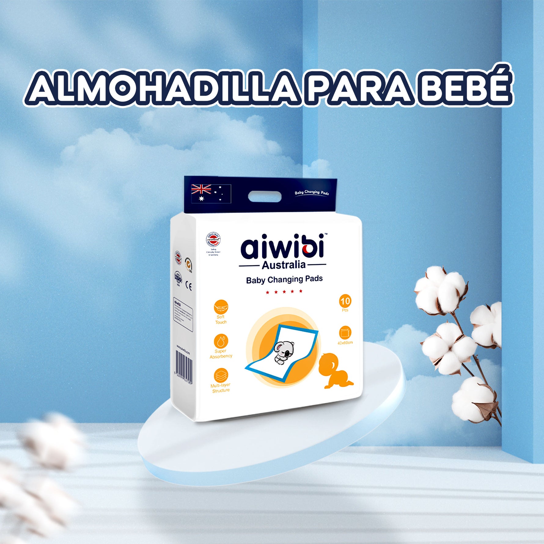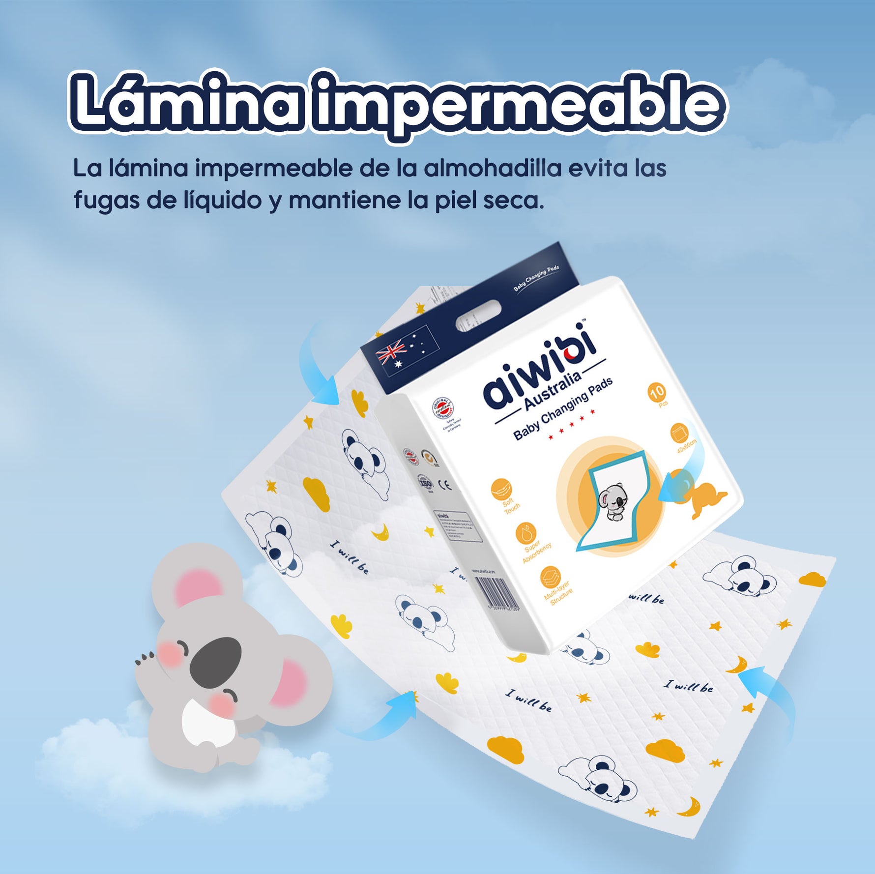 Los cambiadores para bebés Aiwibi están fabricados con materiales respetuosos con la piel, y cuentan con una capa superior supersuave hecha de un tejido no tejido delicado y una capa posterior impermeable para evitar fugas.