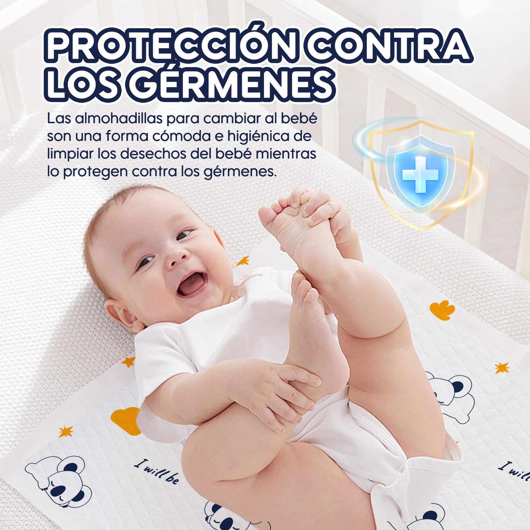 Estas almohadillas proporcionan una superficie higiénica para una limpieza rápida, protegiendo a tu bebé de los gérmenes y garantizando su comodidad durante el cambio de pañales.