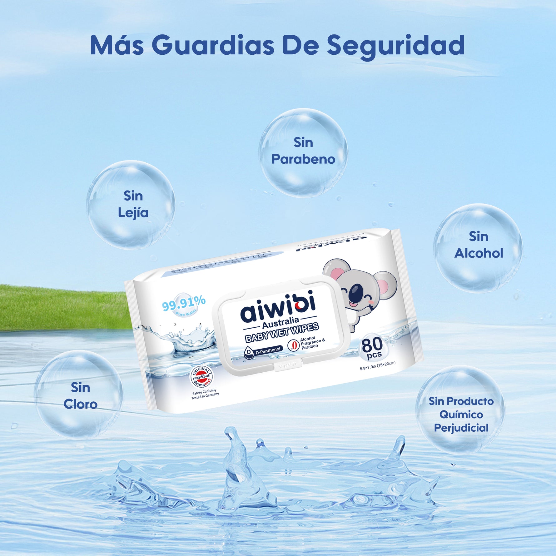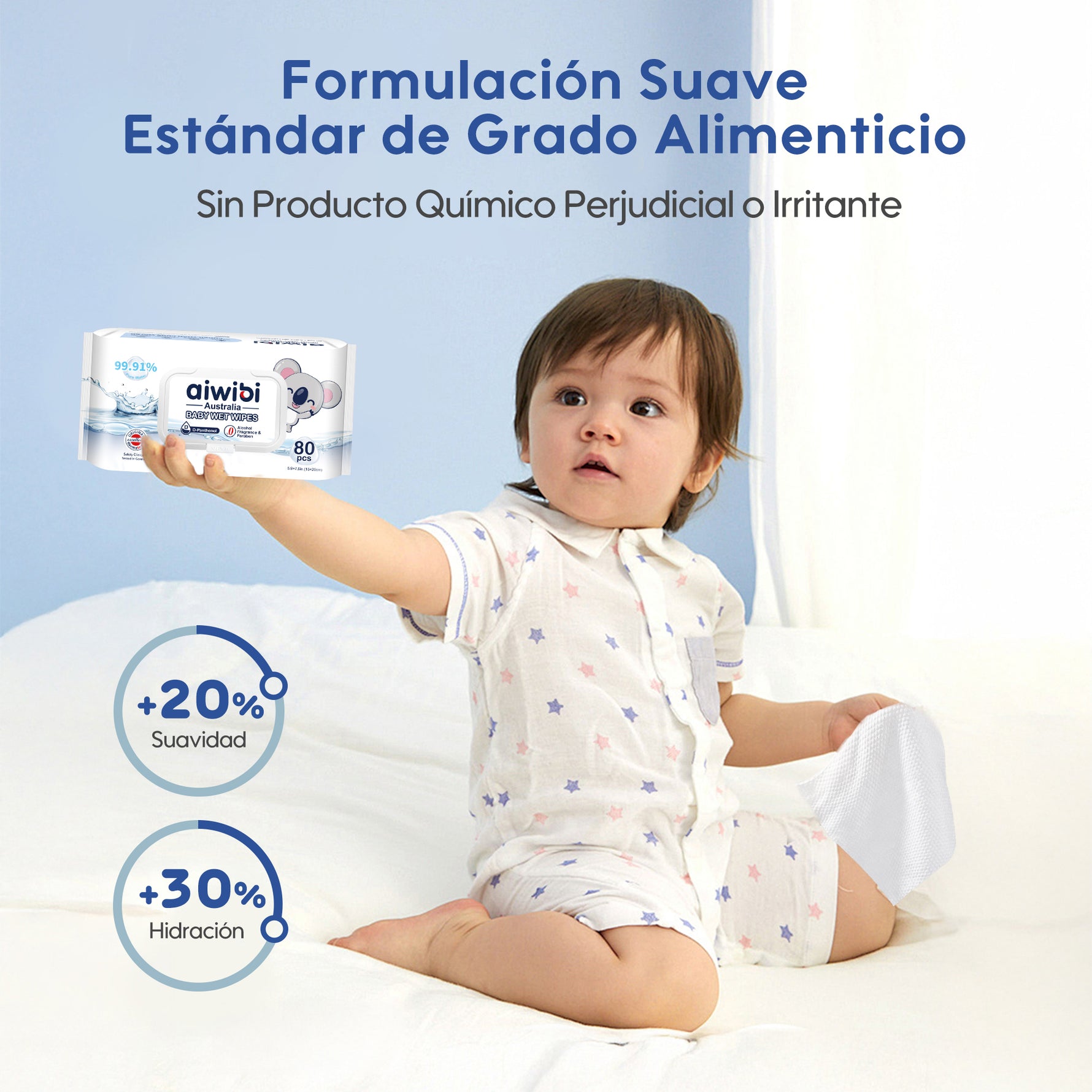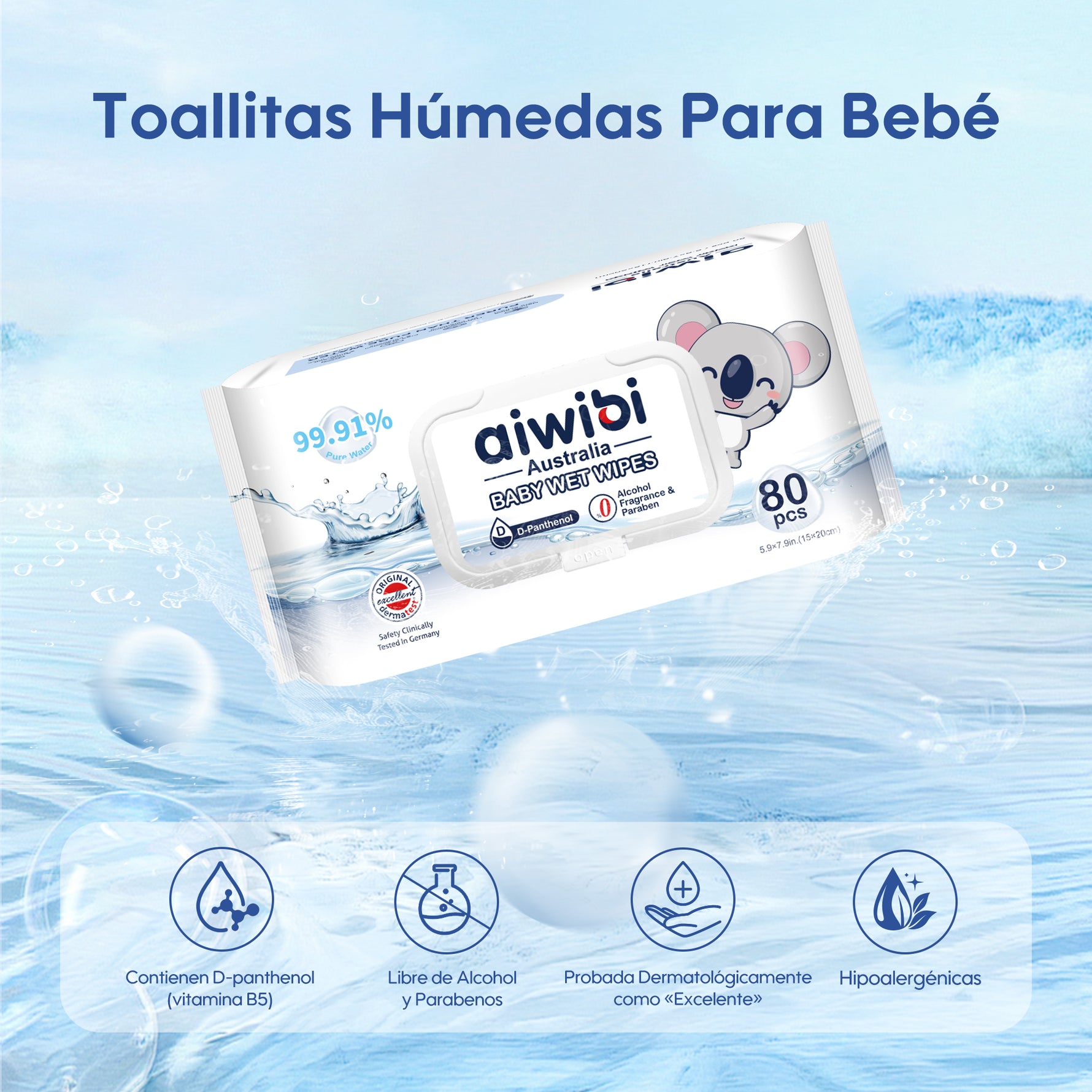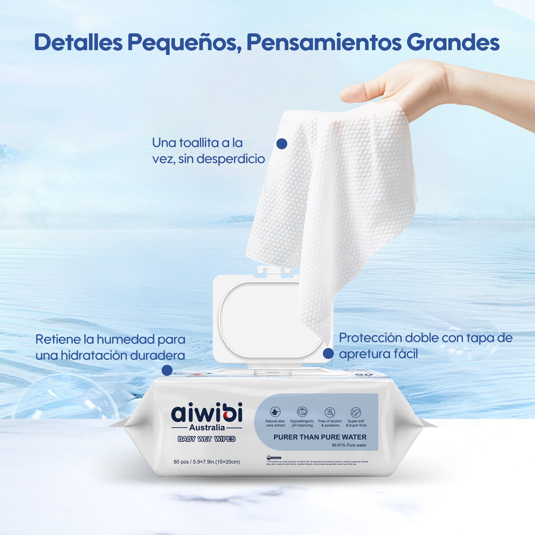 Toallitas con 99,91% Agua Pura y D-Pantenol